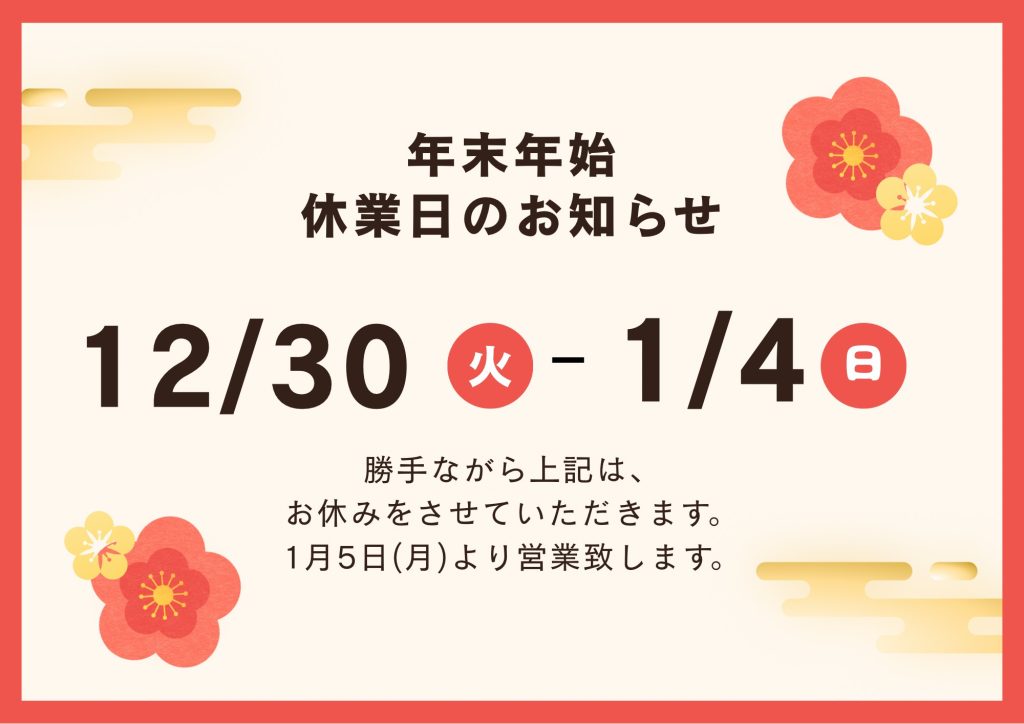 誠に勝手ながら、当サロンでは下記の期間を年末年始休業とさせていただきます。
