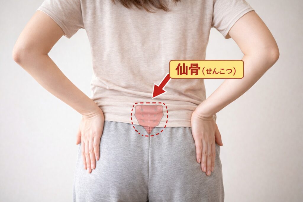仙骨は腰の少し下・お尻の割れ目の上にあり、血流や自律神経と関係しています。